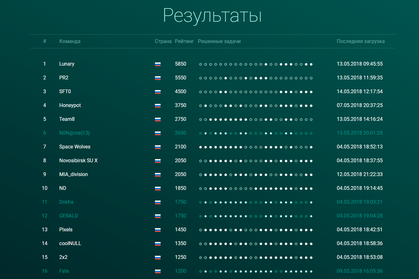 Сергей Близнюк: «Больше всего запомнилась задача по криптографии, оценивающаяся в 1000 баллов (в то время как остальные задания оценивались в 100-400). В качестве условия были даны три вложенных друг в друга зашифрованных архива, для каждого из которых необходимо было найти и применить подходящую для данного алгоритма шифрования атаку. Выделялась задача прежде всего своей нетривиальностью и сложностью. Первый этап мы решили сравнительно быстро: проанализировав содержимое архива и увидев в нем файл, который свободно распространялся в сети, мы идентифицировали и успешно провели атаку на основе открытого текста. Следующий этап дался с большим трудом, так как архив в нём был дважды зашифрован при помощи криптостойкого алгоритма blowfish. Этот этап решился «методом встречи посередине». К сожалению, последний этап, заключавшийся во взломе шифра RSA2048 с известной частью приватного ключа, во время мероприятия мы решить так и не успели, однако всё равно остались довольны, так как смогли прикинуть верное, как потом оказалось, решение и подобраться достаточно близко к флагу. После соревнований задача была дорешена».